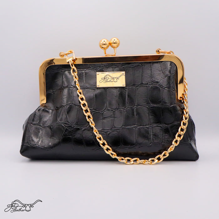 This kiss clutch combines exquisite craftsmanship with practical design. The full-grain leather offers durability and a luxurious feel, while the chain allows for both hand-held and over-the-shoulder carrying options. Whether you're attending a formal event or a casual outing, this clutch complements any ensemble, making it a must-have addition to your accessory collection.