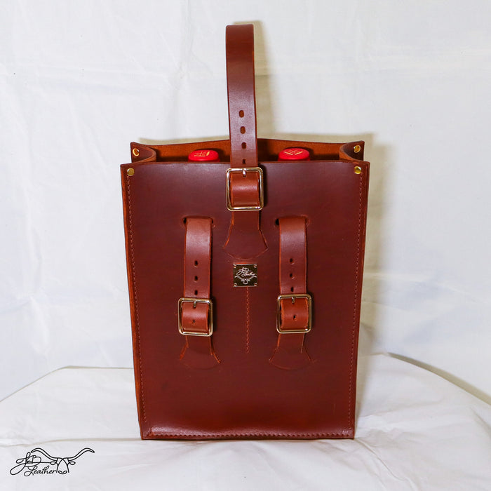 Handmade from full grain leather, this 9" x 12.5" x 3" Wine Tote is both durable and elegant, ideal for picnics, dinner parties, or gifting.