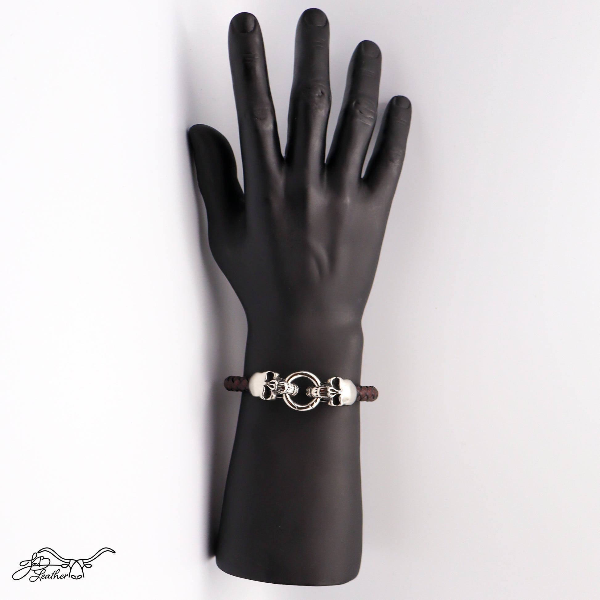 With its intricate design and durable materials, the Dueling Skulls Bracelet is perfect for those who appreciate distinctive jewelry. The braided leather offers both comfort and resilience, making it suitable for everyday wear or special occasions. This bracelet not only enhances your outfit but also serves as a conversation starter, reflecting your unique style and personality.