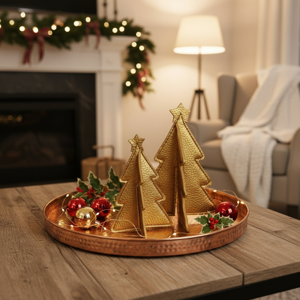 Crafted from high-quality leather, our Holiday Trees are not only stylish but also durable, ensuring they can be cherished for years to come. The rich textures and beautiful colors create a festive ambiance, making your home feel inviting and cozy. These trees serve as a striking centerpiece, complementing other seasonal decorations.