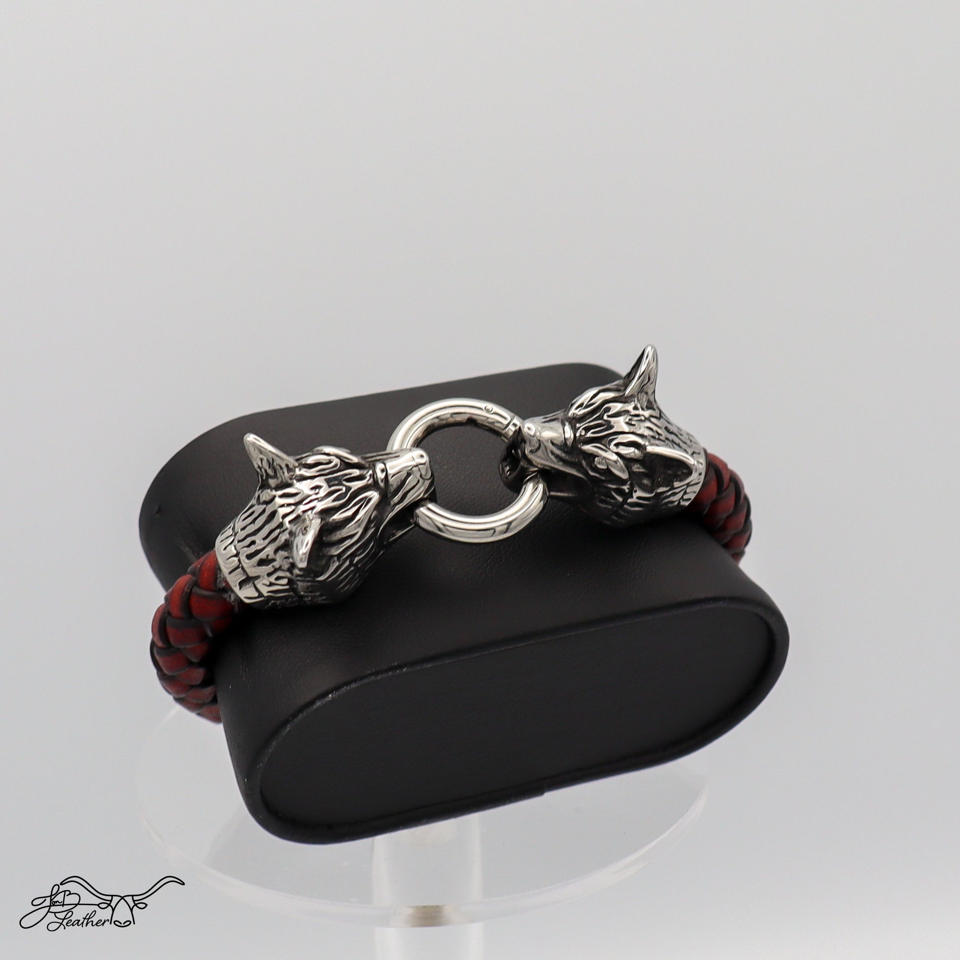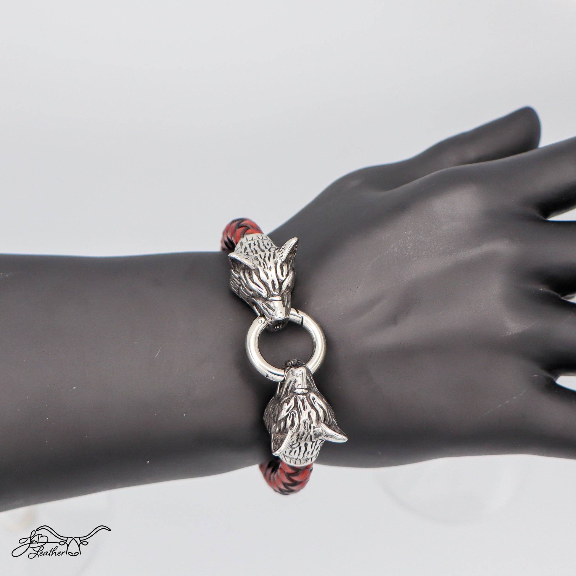 Embrace the spirit of the wild with the Wolf Bracelet by Jon B Leather.